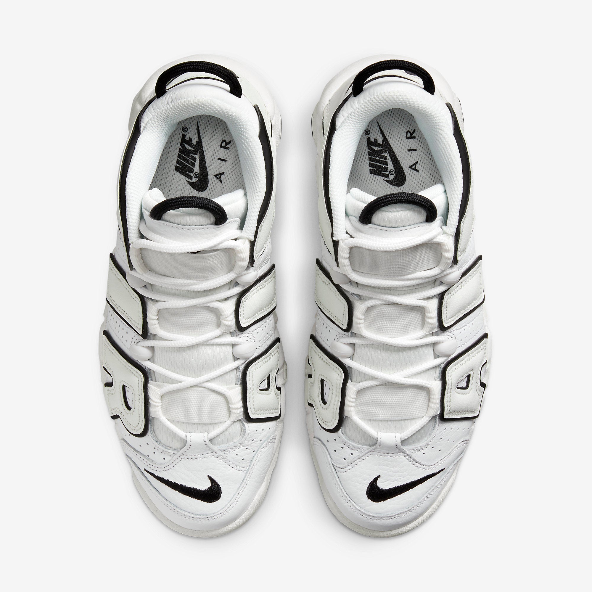 Το Nike Air More Uptempo Summit White κολλάει στο αρχικό σχέδιο Air More Uptempo με διάτρητο λευκό δερμάτινο επάνω μέρος και έντονες επικαλύψεις κειμένου "AIR" σε στυλ φούσκας. Επιτυχίες μαύρου εμφανίζονται με περίγραμμα κάθε γράμματος στις επικαλύψεις AIR, καθώς και στο λογότυπο της φτέρνας Swoosh. Μια χοντρή σόλα Air Max αποτίει φόρο τιμής στο στυλ της γραμμής μπάσκετ της Nike τη δεκαετία του 1990.