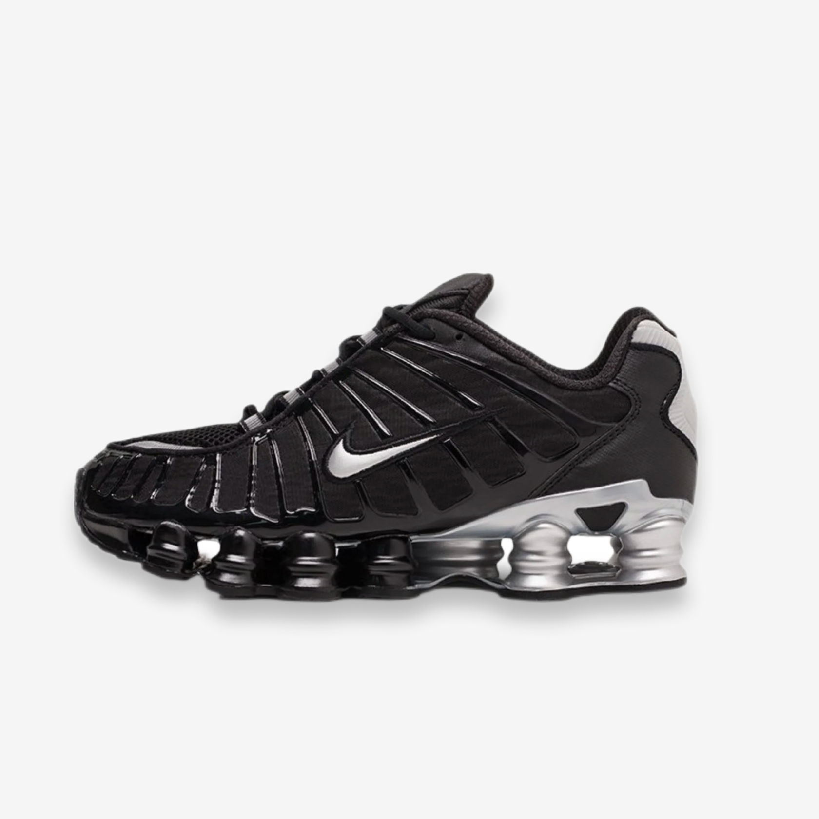 Το Nike Shox TL Black Metalic φέρνει μια τολμηρή και δυναμική εμφάνιση στη εμβληματική σειρά Shox. Αυτό το ανδρικό sneaker διαθέτει κομψό μαύρο επάνω μέρος που συμπληρώνεται από εντυπωσιακές πινελιές απο μεταλικό χρώμα, δημιουργώντας μια οπτικά ελκυστική αντίθεση. Ο σχεδιασμός του παπουτσιού ενισχύεται περαιτέρω από μεταλλικές ασημένιες λεπτομέρειες, προσθέτοντας μια πινελιά κομψότητας στην αθλητική αισθητική του. Το μοντέλο Shox TL είναι γνωστό για το χαρακτηριστικό του σύστημα απορρόφησης κραδασμών, το οποίο παρέχει υποστήριξη απόκρισης και επιστροφή ενέργειας σε κάθε βήμα.